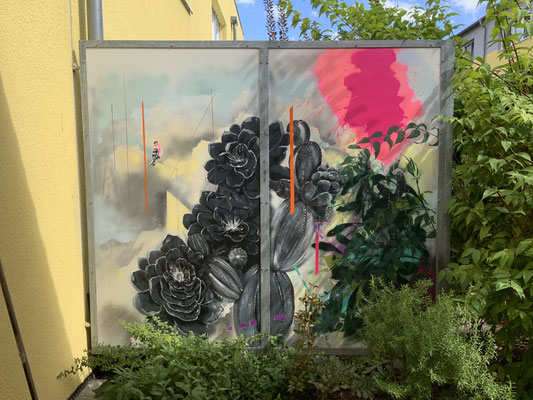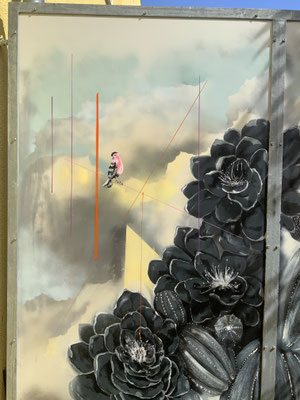 Zitate von Sir D. Attenborrough aus seinem Film" Das Jahr danach" bilden die Grundlage für dieses Wandbild.Im Jahr 2020 hat Corona die Weltwirtschaft innerhalb kurzer Zeit zum Stillstand gebracht. Flugzeuge blieben auf dem Boden, Strassen waren leer, Tiere eroberten Gebiete zurück, manche Population konnte sich erholen, vielen Menschen fiel der blaue Himmel auf... Der Wald wurde mehr denn je zum Sehnsuchts- und Zufluchtsort für viele Menschen.